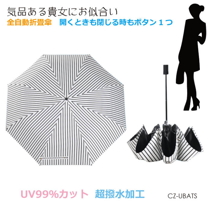 自動開閉 ワンタッチ開閉 折りたたみ傘 ストライプ 全2色 CZ-UBATS 楽天スーパーSALE
