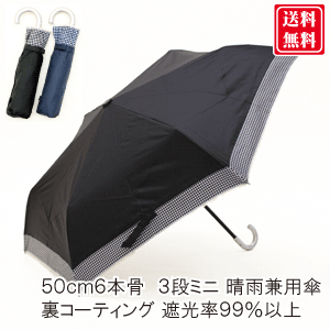 【送料無料 一部地域を除く】50cm 6本骨 コンパクト軽量ミニ傘 紫外線99%カット・遮光率99% コーティング生地 裾ギンガム切継ぎ ピコ[晴雨兼用傘・日傘 ]